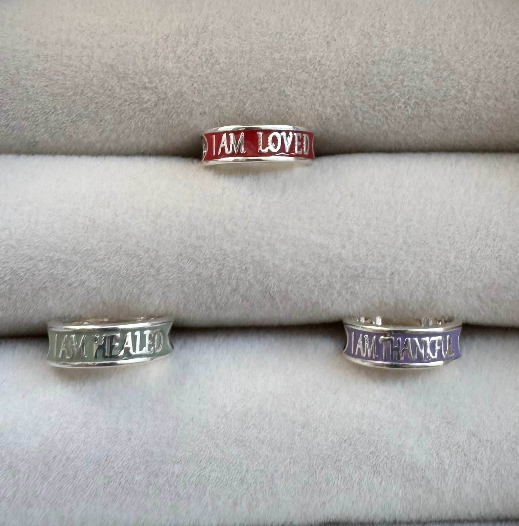 Affirmation in Bloom: Silver & Enamel Pendants. Discover jewellery that nourishes the soul. Our exquisite silver pendants combine elegant design with the power of positive affirmations. Each pendant showcases a delicate 'I am' statement, enhanced by a rich enamel backing. Select the warmth of 'I am loved' in red, the grace of 'I am thankful' in lilac, or the tranquility of 'I am healed' in sage green. These pendants are more than adornments; they are wearable affirmations, designed to uplift and inspire. Our necklace pendants aren't just for necklaces, they're designed for versatility, so you can easily add them to most bracelets or charm bracelets to create a unique look.